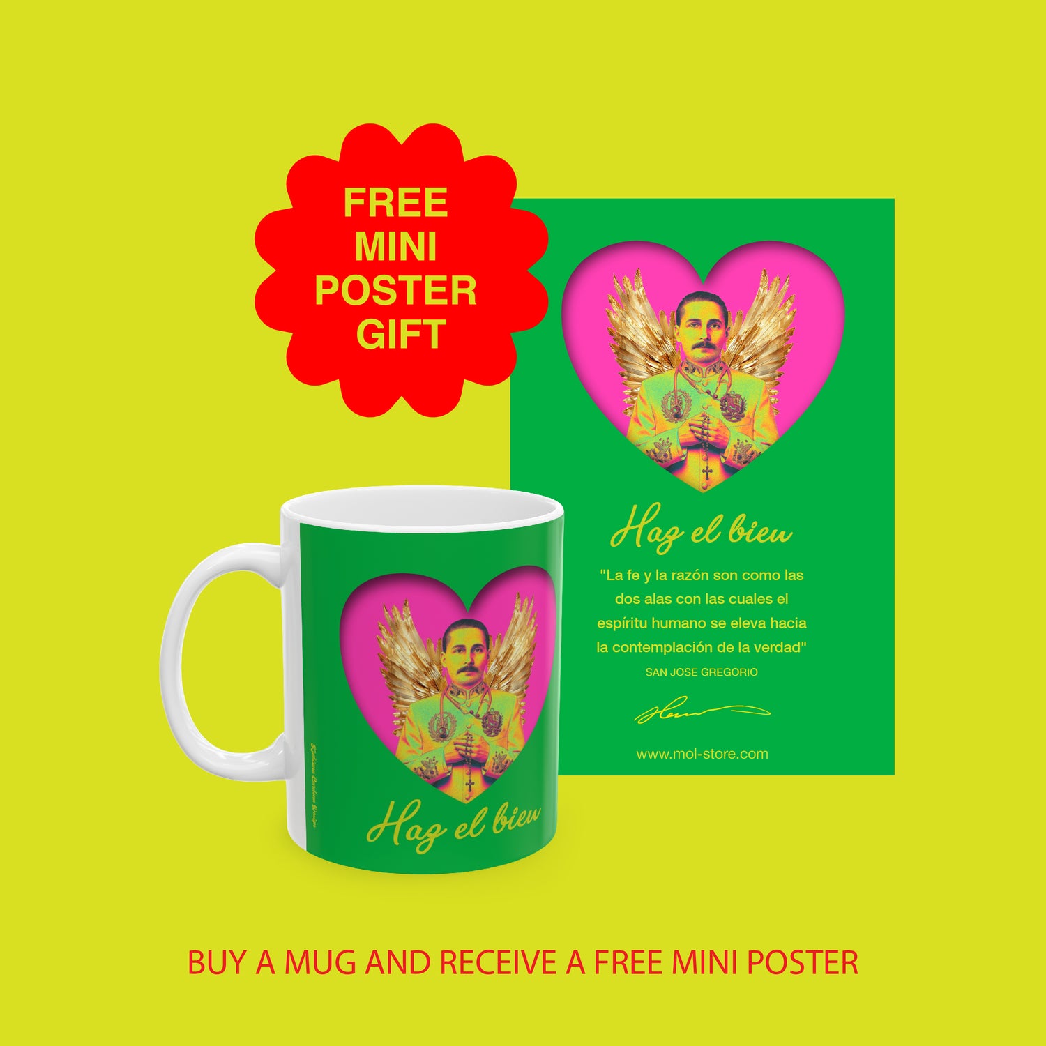 Inspired by the legacy of Saint José Gregorio Hernández, we present a collection of products that carry a piece of his healing spirit. With every mug you purchase, receive a complimentary mini poster with his image and an inspiring message. Visit our website to discover items filled with peace and faith. Through devotion to him, your heart can open to the possibility of a miracle. Let his light guide you… and Do Good.