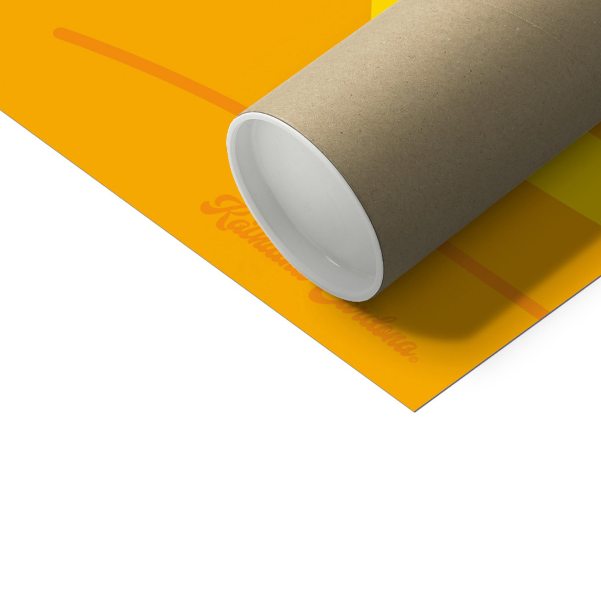 Las impresiones artísticas mate mejoradas se envían en una variedad de tipos de embalaje según el tamaño/variante o el lugar donde se imprima el artículo. Cuando se envía desde el Reino Unido, la UE, EE. UU., AU: Tubos rígidos de cartón enrollado en espiral.