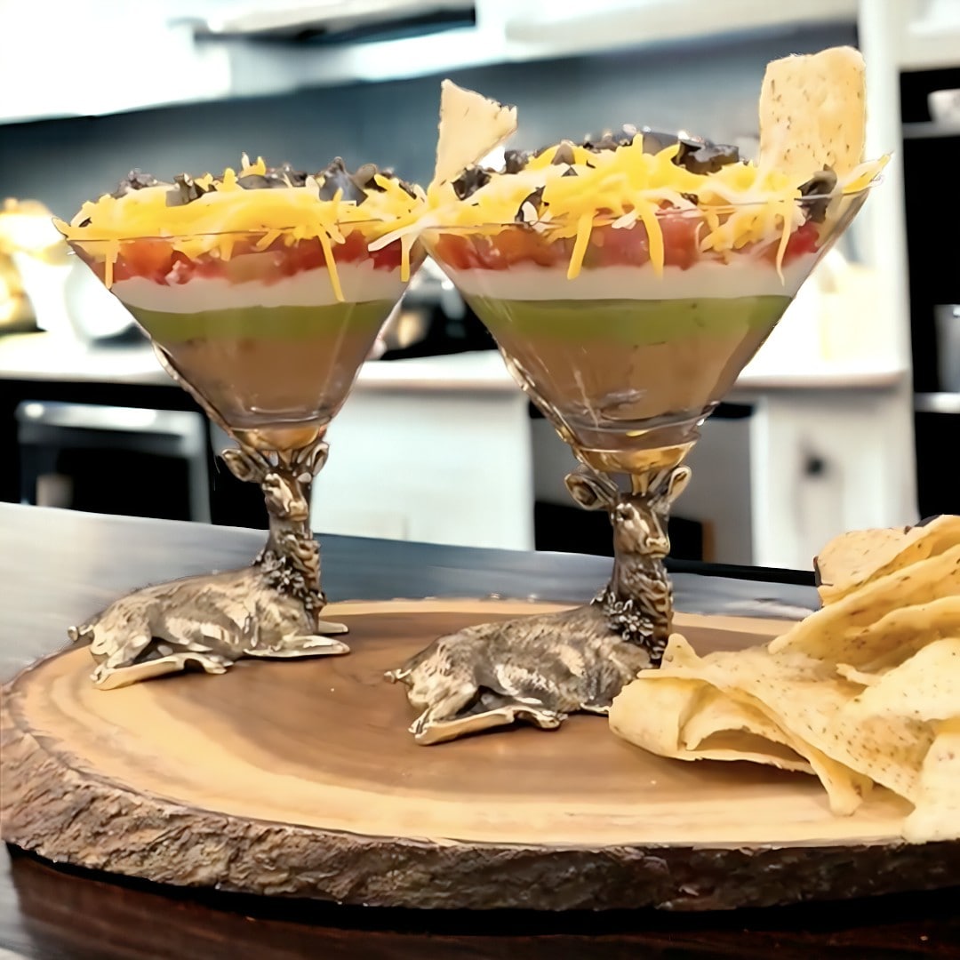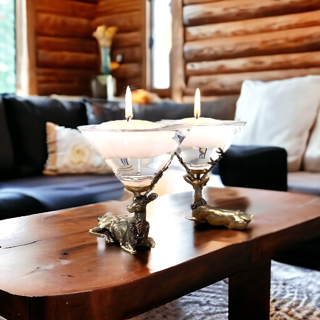 The sturdy brass stag and his proud antlers hold the martini glass securely in place for an extraordinary visual delight.