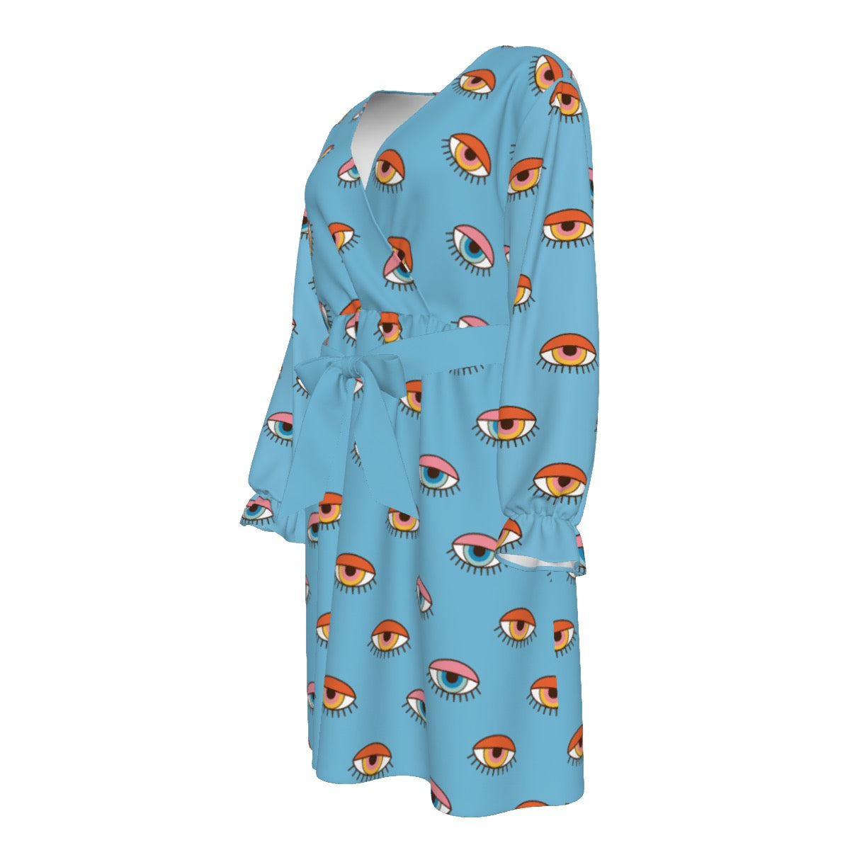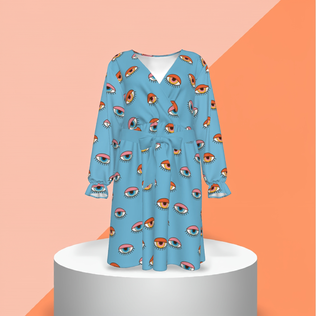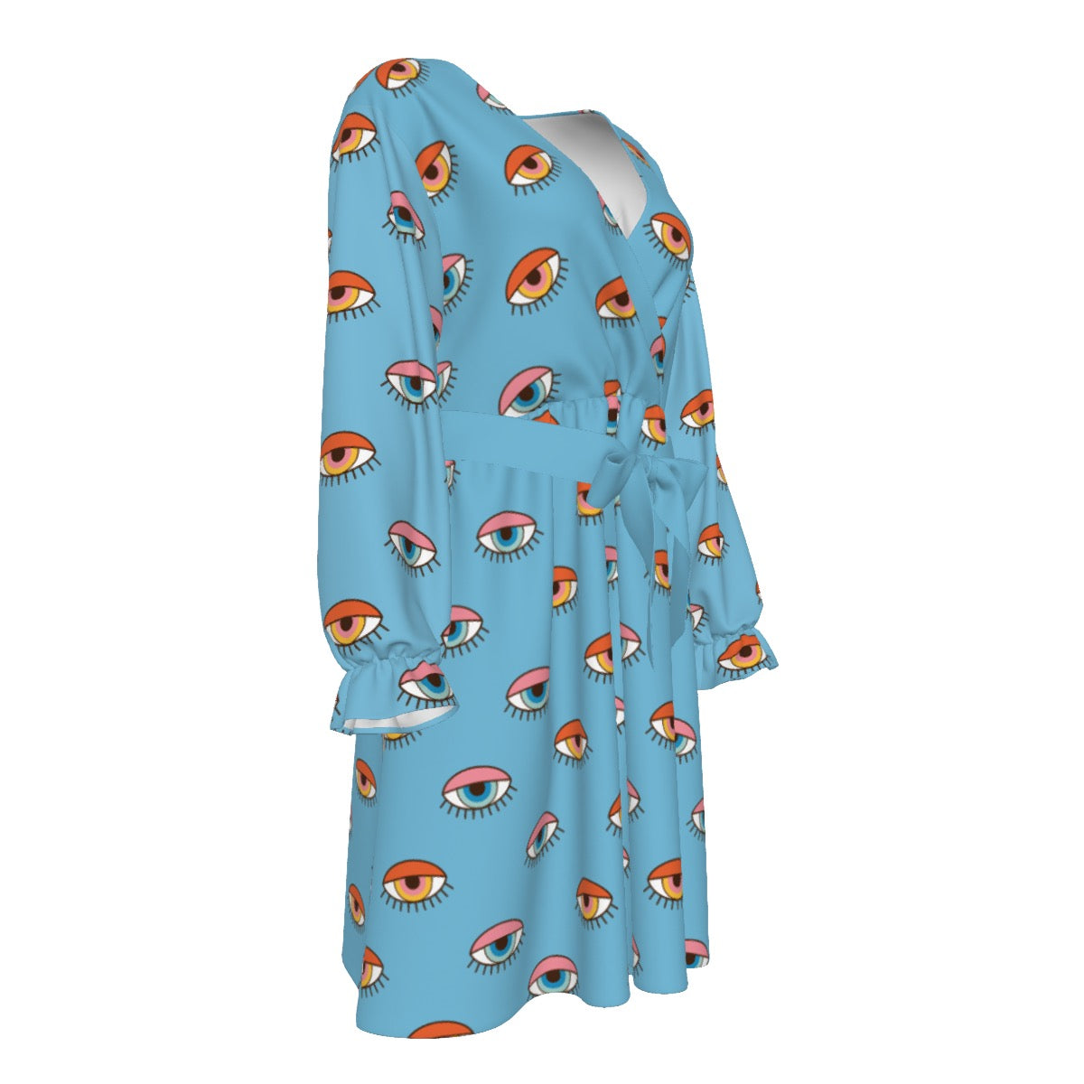 Blue Eyes Women's V-neck Dress With Waistband(Plus Size)