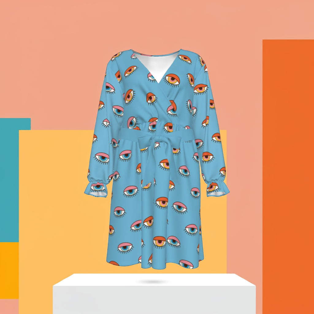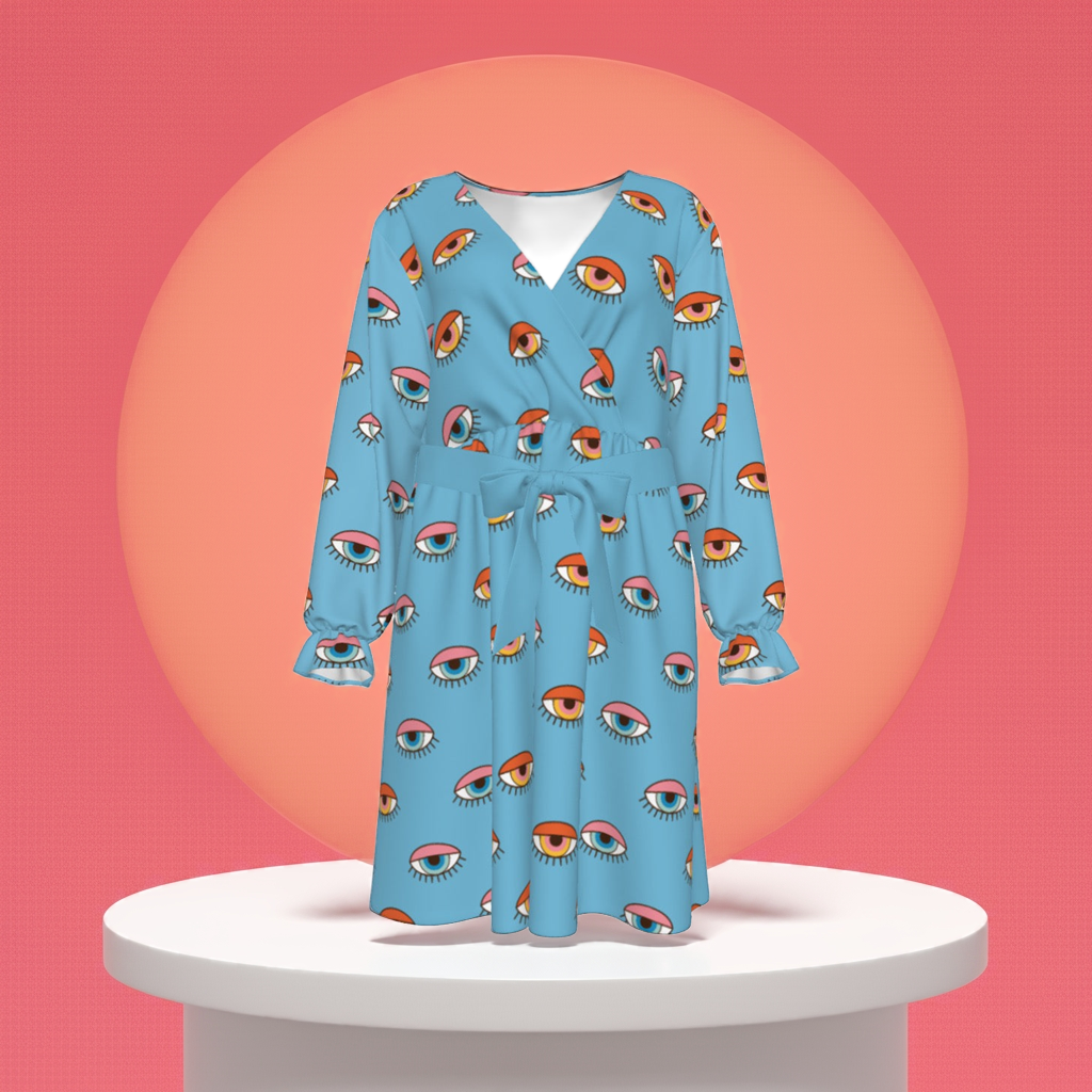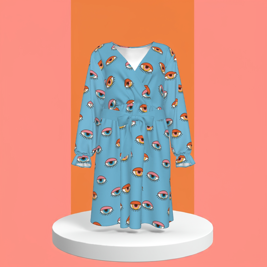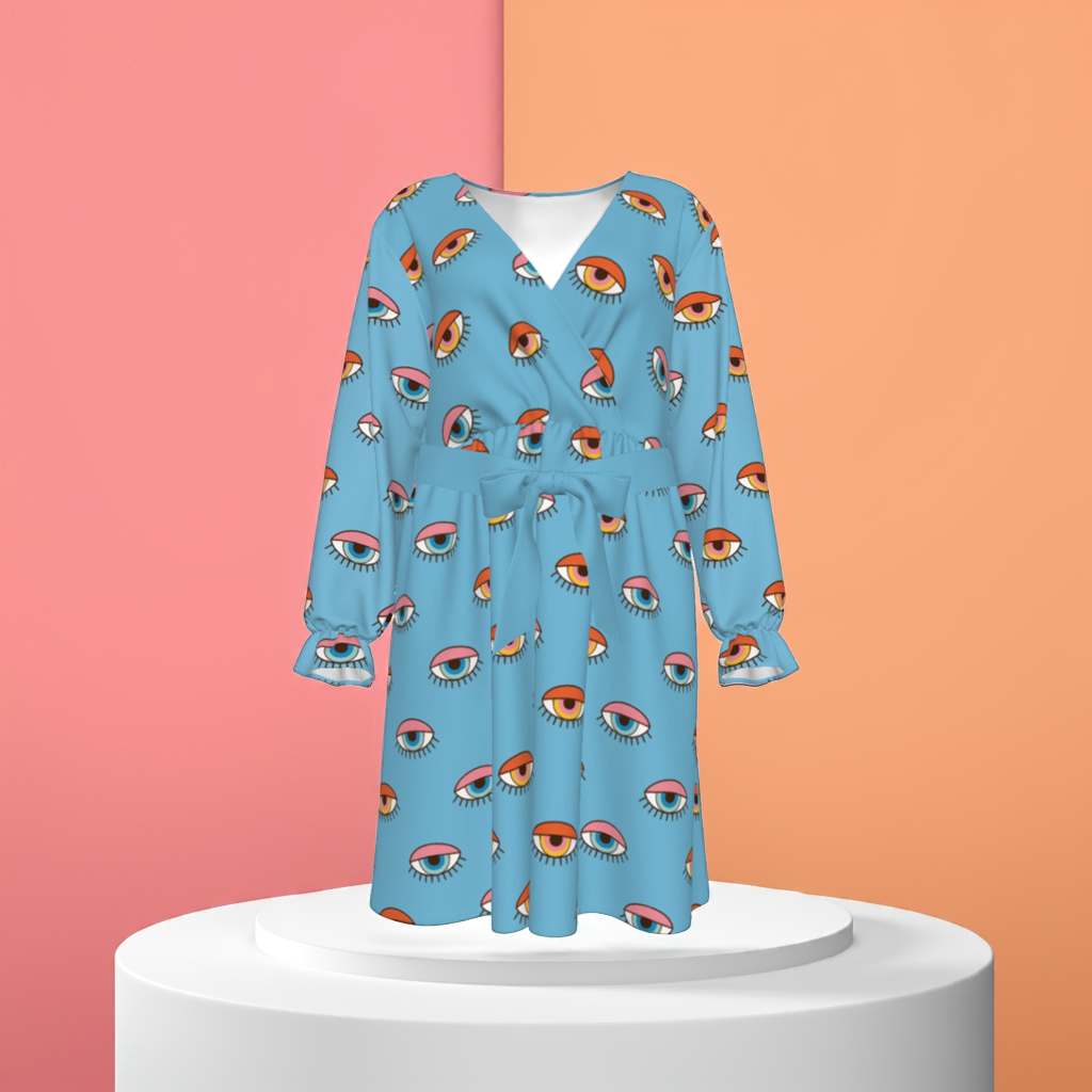 Blue Eyes Women's V-neck Dress With Waistband(Plus Size)