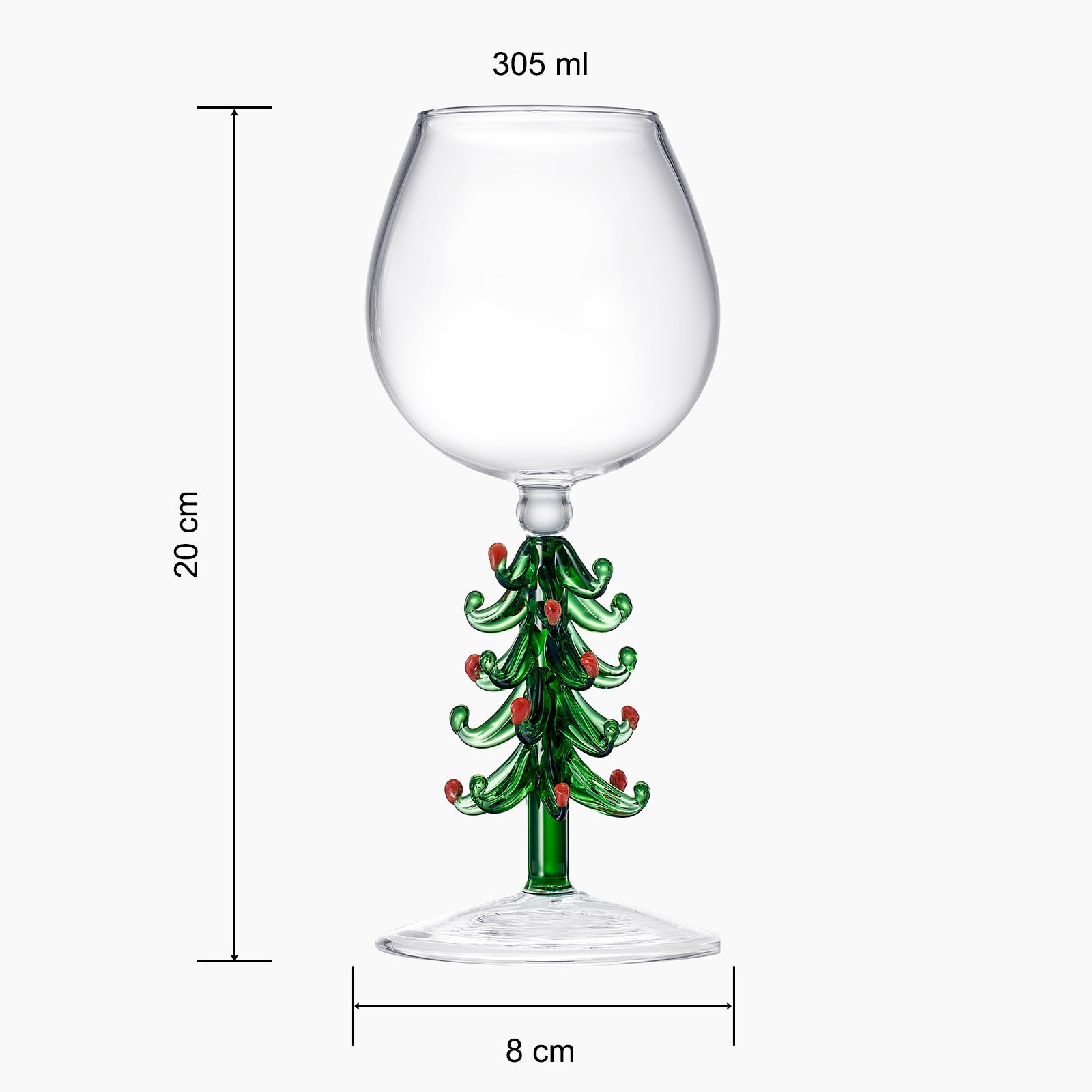 - The perfect Christmas gift and festive tableware for the holidays. This beautiful Christmas tree wine glass is elegant, festive and cheerful!. This Christmas tree wine glass Set of 2 is a great way to add a personal touch to your home bar or kitchen. The artistic pattern complements any decor, from classic to rustic, contemporary to traditional. There's an elegant simplicity to this delicate wine glass that makes it ideal for everyday or festive use.